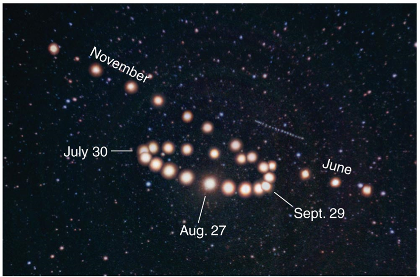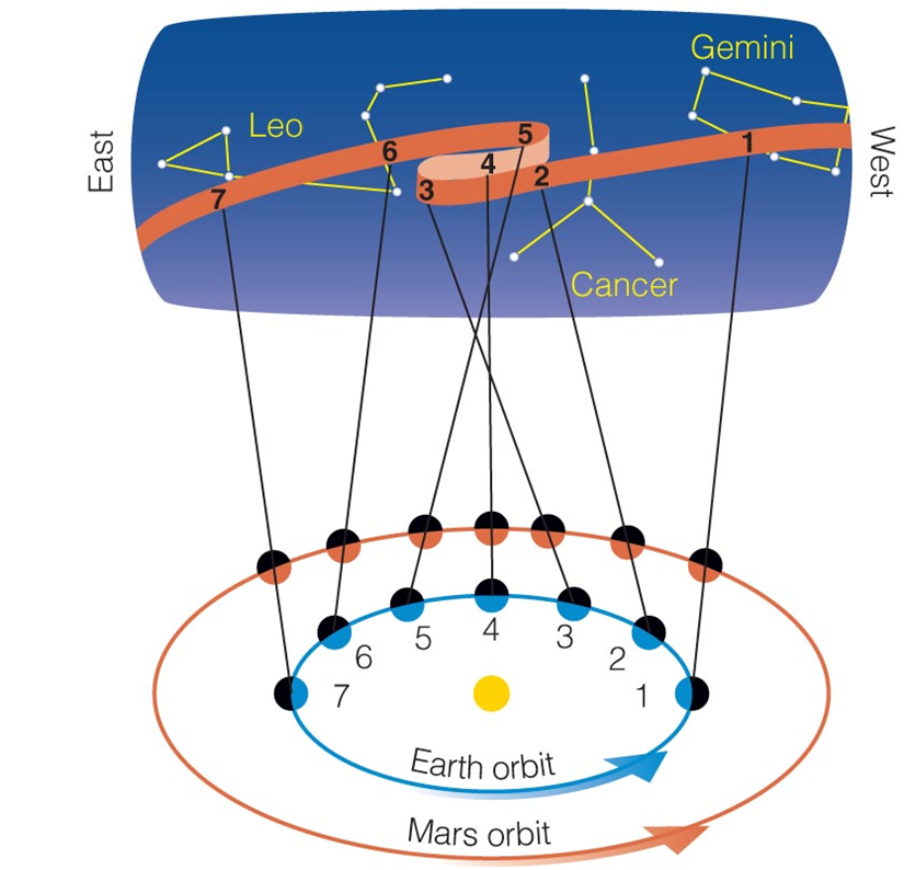 - For example, over a period of 10 weeks, Mars appears to stop, back up, then go forward again, as in the schematic diagram below.