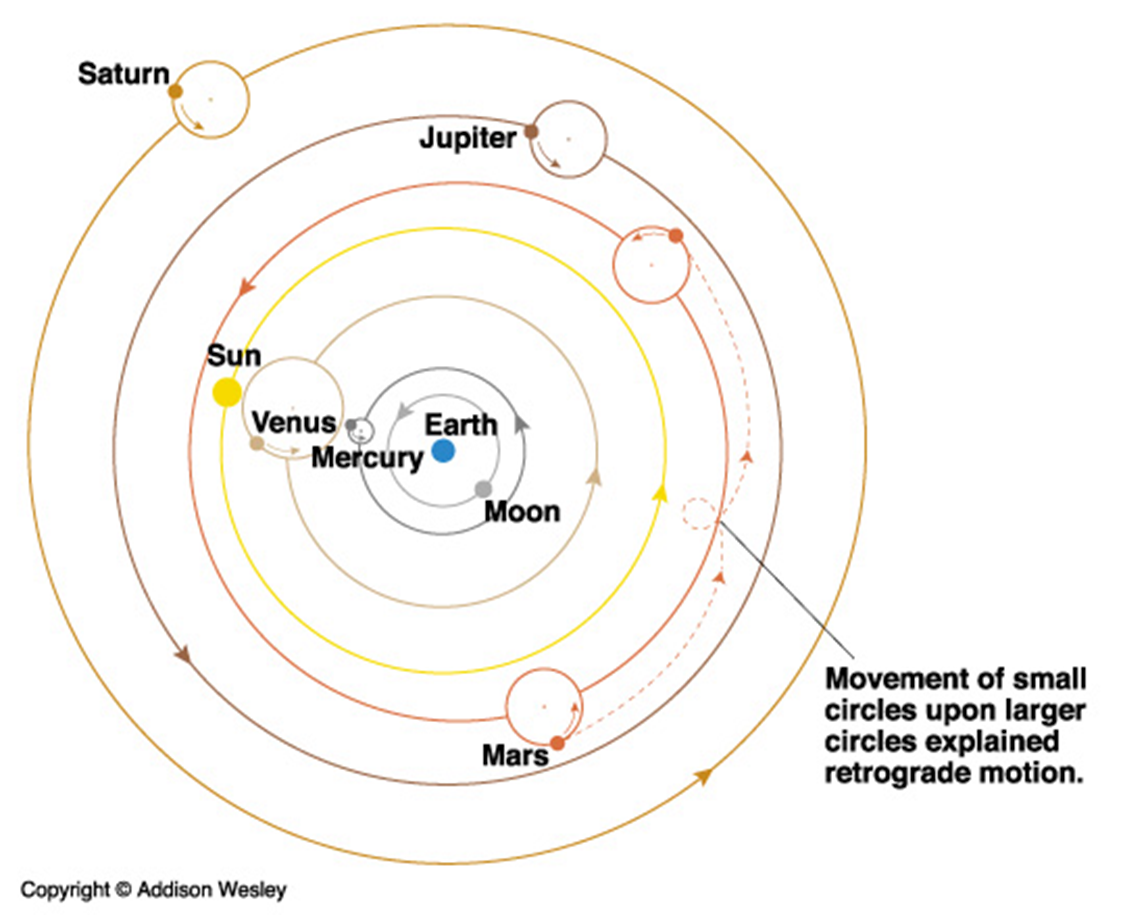 - Ptolemy c. 100-170 CE: Developed most advanced / accurate Geocentric model by use of “Epicycles” – planets orbits are circles on circles