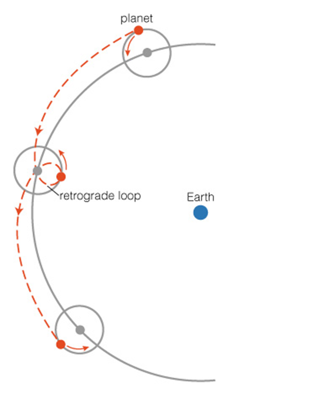 - In the (correct; modern) heliocentric model, retrograde motion is a consequence of one planet (Earth) “lapping” another in its orbit, like a runner on an inner track passing a runner on an outer track, as shown in the diagram of Earth’s and Mars’ orbits below, and the corresponding ‘projections’ on the sky/background stars.
