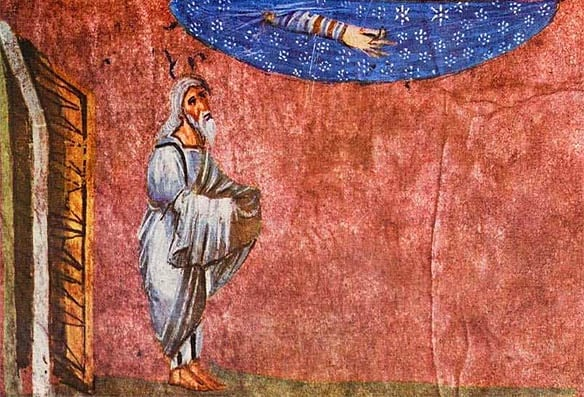 Another early source (most probably dated to the 1st century CE…) is the (so called) Apocalypse of Abraham. “Apocalypse” in this context essentially means “vision” – i.e. a prophetic vision. In this work of unknown authorship, the story of Abraham begins with him realizing the falseness of his father’s idols (much as rabbinic midrashim depict events) then God calls out to him, and after saving him from the destruction of his father Terach’s house, He commands the series of sacrifices in Genesis 15:9 (out of sequence with the Torah, while Abram is still in Mesopotamia, presumably; also note that these sacrifices are preceded by the reference to counting the stars in Genesis 15) Abraham is taken on a journey by angels to Mt. Horeb (similar to Moses and Elijah) and there receives a vision guided by angel(s) that takes him up to the heavens.